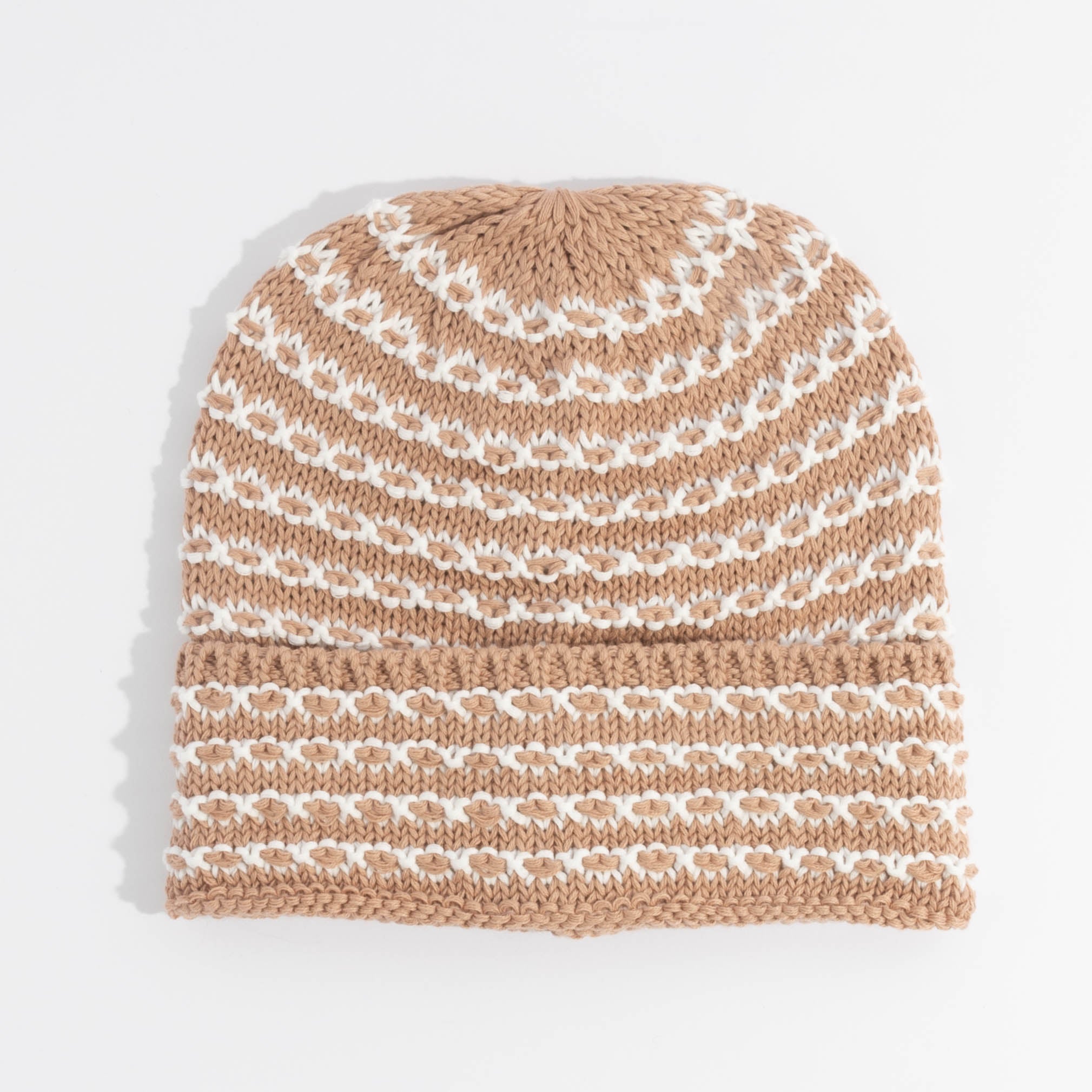 An ode to your favorite sweater. the Stria beanie is the perfect mix of style and warmth. Designed with a loose and intricate striped pattern. giving this a handmade feel. this hat is destined to top off all your favorite fall looks.